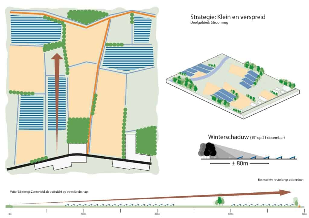 Het Hollandsche IJsselgebied verandert langzaam van agrarisch buitengebied naar een uitloopgebied voor de stad. Wing zocht samen met de gemeente naar een ruimtelijk verhaal waarin zonne-energie niet de boventoon voert, maar wél een plek krijgt. Buiten het directe zicht en in combinatie met groen en paden draagt de energieproductie zo bij aan de bredere ontwikkeling van het gebied.